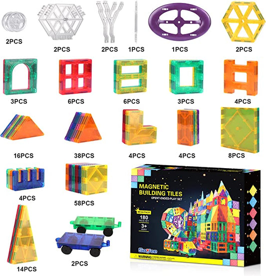 Huge Pack 180PCS Magnetic Tiles Set Compatible Magnet Toys with Ferris Wheel and Cars - Magnetic Blocks STEM Learning Building Construction Toddler Kids Toys for 3+ Year Old Boys and Girls