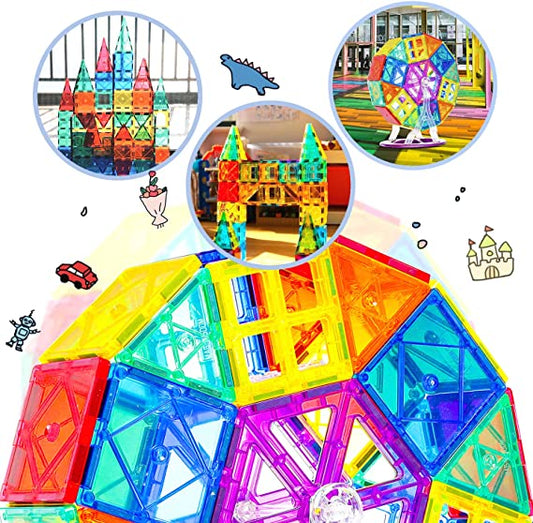 Compatible Magnetic Tiles Building Blocks STEM Toys for 3+ Year Old Boys and Girls Learning by Playing Montessori Toys Toddler Kids Activities Games - 102pcs Advanced Set